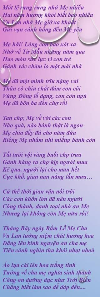 2) “Vu Lan Nhớ Mẹ” – bài thơ buồn không biết tác giả là ai.