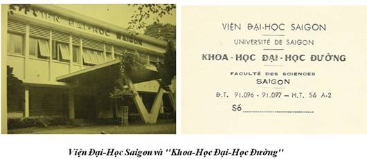 (1) Khoa Học Đại Học Đường Saigon ở số 227 Đại Lộ Cộng Hòa (nay là Nguyễn Văn Cừ). Tọa lạc trong một khu kiến trúc rất đẹp gồm có Trường Trương Vĩnh Ký, Trung Tâm Thính Thị Anh Ngữ, phía sau là Trường Đại Học Sư Phạm, Thư Viện và Sở Học Liệu. Năm 1964 có thêm chi khoa ở khu Đại Học Thủ Đức, dành cho Sinh Lý Sinh Hóa.