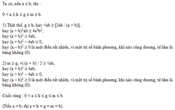II – So sánh 3 loại Trung Bình trên bằng Đại Số.