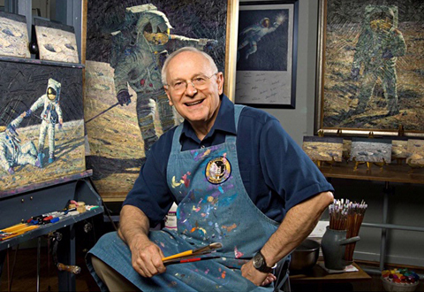 Bean bay lên mặt trăng cùng Conrad vào năm 1969. Phi hành gia này tập lái máy bay khi ông mới 17 tuổi và vẫn còn là học sinh. Sau chuyến bay tới mặt trăng, ông trở thành chỉ huy thứ hai của Skylab, trạm không gian đầu tiên của Mỹ. Ông rời khỏi hải quân Mỹ vào năm 1975 song vẫn tiếp tục làm việc cho NASA tới tận năm 1981. Sau khi nghỉ hưu, ông trở về nhà tại thành phố Houston, bang Texas để vẽ tranh. Nội dung chủ yếu trong các tranh của Bean là những cuộc đổ bộ lên mặt trăng. Ảnh: si.edu.