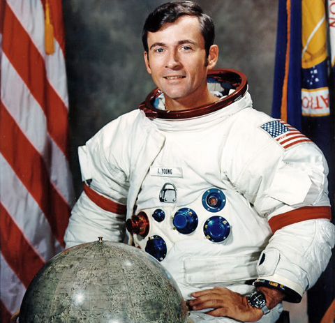 Young là một trong những phi hành gia làm việc lâu nhất và bay nhiều nhất trong chương trình thám hiểm vũ trụ của Mỹ. Ông bay tới mặt trăng hai lần, trong đó lần đầu diễn ra vào tháng 4/1970 và với tàu Apollo 13. Tuy nhiên, NASA yêu cầu phi hành đoàn không đáp xuống mặt trăng do lo ngại rủi ro. Sau đó Young trở lại mặt trăng bằng tàu Apollo 16 vào tháng 4/1972. Trong chuyến bay này, NASA cũng suýt ra lệnh hủy việc đổ bộ. Ngoài ra Young còn là người duy nhất bay vào vũ trụ 6 lần và là nhà du hành duy nhất bay quanh mặt trăng một mình. Sau 42 năm làm việc tại NASA, Young nghỉ hưu vào năm 2004. Ảnh: NASA.