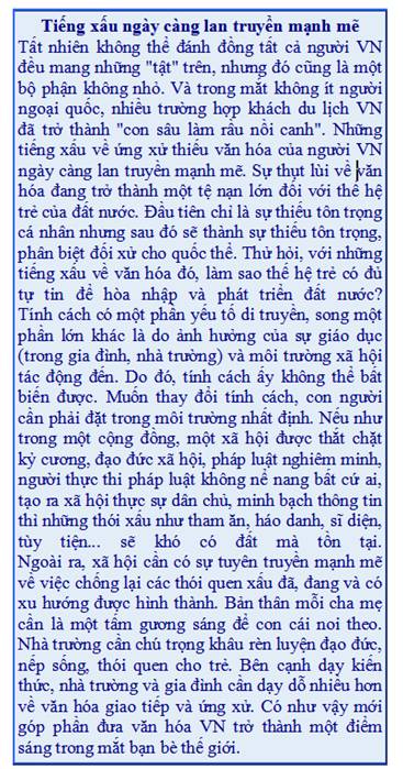 Còn chuyện xả rác bừa bãi thì nhiều vô kể. Hay gặp nhất là ở sân bay. Có lần tôi đang ở sân bay Đài Loan, vì thời tiết xấu nên bị hoãn chuyến bay lại 2 giờ. Sân bay đông người không đủ chỗ ngồi, rất nhiều người nước ngoài phải đứng. Thế mà một đoàn người Việt, toàn những người trẻ 8X, 9X lôi báo ra trải dưới sàn ngồi, lôi bài ra đánh reo hò ầm ĩ. Đến khi đứng dậy thì báo mỗi chỗ một mảnh, mặc đấy cho nhân viên sân bay dọn dẹp. Đúng hôm ấy, chủ đề tôi chia sẻ lại là: bản sắc văn hóa và mối quan hệ với hành vi ứng xử.