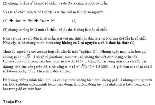 Cách chứng minh không hiện hữu nầy nhắc ta nhớ đến một chuyện xảy ra từ thời Pythagore, năm 500 trước Công nguyên.