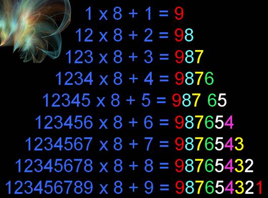 “Nếu lấy số hợp bởi 9 con số từ 1 đến 9 theo thứ tự đó, nhân với 8, rồi lấy kết quả cộng với 9, thì ta có số đó đọc ngược lại”.