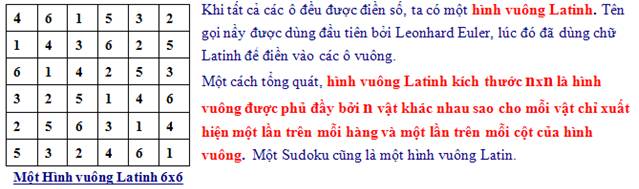 Đó là trò chơi cho 2 người trên một hình vuông cạnh nxn được chia thành n2 ô vuông nhỏ đều nhau bằng những đường ngang và dọc. Hai người chơi luân phiên mỗi người ghi một số vào một ô trống của hình vuông và số đó phải khác với những số đã có sẵn trên hàng và cột chứa ô đó. Nếu kích thước của hình vuông là nxn, thì các số điền vào phải từ 1 đến n. Người thua khi không thể tiếp tục điền số vào hình vuông. Nếu tất cả các ô của hình vuông đều được điền số, thì “Hoà”.