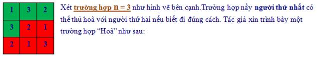 Ta ký hiệu (i,j) là ô vuông ở hàng thứ i và cột thứ j và số ghi của người thứ nhất màu đỏ và