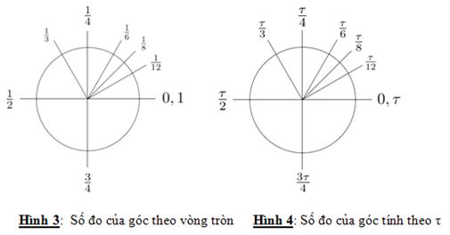 Theo Hình 3 và 4, ta thấy sự phân chia của góc theo τ hợp lý hơn theo π.