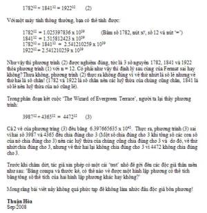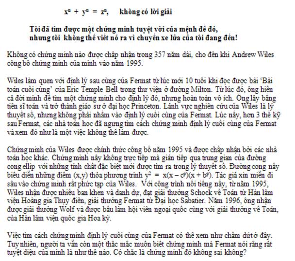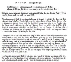 Tôi đã tìm được một chứng minh tuyệt vời cho mệnh đề đó mà lề của hồ sơ nầy không đủ chỗ để viết.