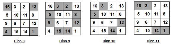 e) Tổng các số ở 4 góc bằng 34 (Hình 8)
