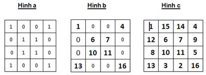 Bước 1: Bạn vẽ hình vuông có 16 ô và đánh số 0 và 1 như Hình a.