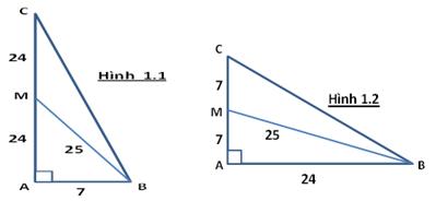 a) AB = 7, AC/2 = 24 hay AC = 48 (Hình 1.1)