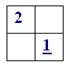 Người thứ nhất viết một số từ 1 đến 2 vào một ô bất kỳ của hình vuông 2×2. Người thứ nhì luôn luôn thắng bằng cách viết số còn lại vào ô trống ở góc đối diện. Thí dụ: người thứ nhất viết số 2 vào ô (1,1), người thứ hai viết số 1 vào ô (2,2). Người thứ nhất thua vì không tiếp tục điền số được.