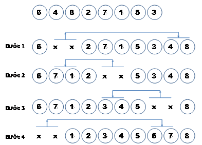 Bốn lần di chuyển các thẻ gỗ được mô tả qua 4 bước trong hình vẽ dưới đây: