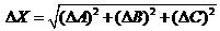 ΔA, ΔB và ΔX lần lượt là sai số của các đại lượng A, B và X.