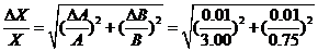= > X = (3.00 ± 0.01) / (0.75 ± 0.01) = 4.00 ± ΔX