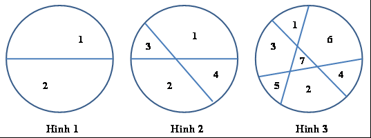 Chứng ta không biết chắc chắn kết quả trên có phải là lời giải đúng của bài toán hay không cho đến khi kết quả được kiểm chứng bằng thực nghiệm (tức là vẽ hình và đếm các phần cắt ra – Hình 5). Vì sao? Vì phương pháp áp dụng là “Phương pháp Quy nạp” (Induction), dùng những kết quả đã biết để suy ra quy luật và dùng quy luật đó để suy ra kết quả chưa biết. Phương pháp đó không phải luôn luôn đúng!