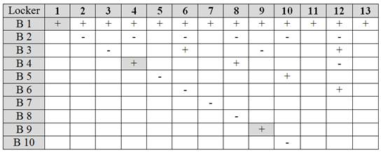 Vì giới hạn của tờ giấy, bảng chỉ ghi đến locker 13 và Bước 10. Độc giả có thể dễ