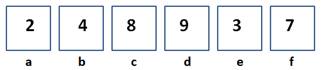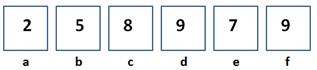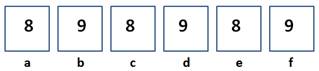 Trên một tờ giấy, Bình kẻ 6 ô vuông kề nhau và thẳng hàng như hình duới đây. Các ô được đánh dấu là a, b, c, d, e và f.