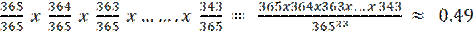 (365/365) x (364/365) ≈ 0.99726