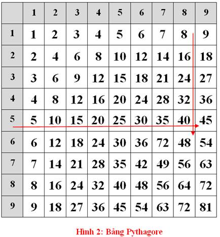 Nhưng điểm hữu dụng của bảng Pythagore là tạo dịp để trẻ em suy nghĩ, tìm đúng chỗ của 2 số phải nhân để thấy kết quả. Lâu dần, trẻ em cũng sẽ thuộc các bảng cửu chương như trong Hình 1 một cách dễ dàng.