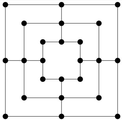 Cờ 9 tướng là trò chơi giữa 2 người trên một bàn vuông có 24 vị trí để đặt con cờ như hình vẽ dưới đây: