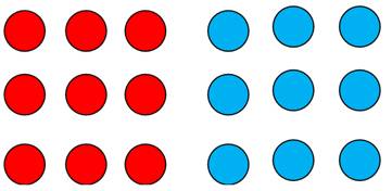 Con cờ gồm có 18 thẻ tròn, 9 thẻ màu đỏ và 9 thẻ màu xanh (hay 2 màu khác).