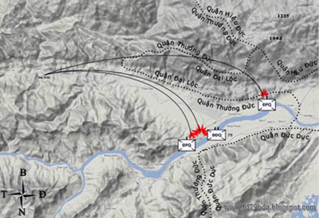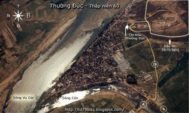 Trên sườn đồi, về hướng tây, ở đầu xã là Trụ sở văn phòng Quận và cũng là Chi Khu Thường Đức. Giáp lưng Quận, trên đỉnh đồi là hậu cứ của Tiểu Đoàn 79 Biệt Động Quân (TĐ79/BĐQ). Đây là một căn cứ do quân đội Mỹ thiết lập trước đây dùng làm nơi xuất phát của những đơn vị Nhảy Toán bao gồm cả Việt và Mỹ. Ngày 14 tháng 11 năm 1970, căn cứ được chuyển giao cho TĐ79/BĐQ. Ngoại trừ dăm ba lần Tiểu Đoàn về đây dưỡng quân sau những cuộc hành quân ở những vùng khác trên khắp Quân Khu 1, mỗi lần về nghỉ khoảng hai ba tuần. Hầu như quanh năm, Tiểu Đoàn chỉ để lại độ một Trung Đội, khoảng vài mươi người, để quản trị hậu cứ.