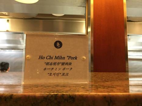 Tôi thầm nghĩ không biết ông Hồ Chí Minh mà còn tỉnh táo để biết có kẻ dám mang tên mình ra đặt cho món ăn, xếp mình ngang hàng với Ông Cả Cần, Bà Giáo Thảo thì ông Hồ nghĩ sao nhỉ. Ông dám nổi giận tuyệt giao với Singapore và cấm không cho Cruise line này ghé Việt Nam lắm. Tôi cũng chẳng dám mang chuyện này ra hỏi ý kiến mấy ông bà từ “Thành Phố” qua.