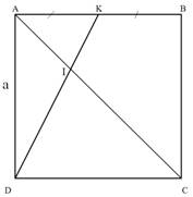 Cho hình vuông ABCD cạnh a. Đoạn nối đỉnd D với trung điểm K của cạnh AB cắt đường chéo AC tại I. Tính diện tích của 3 tam giác AKI, CDI, ADI và tứ giác KBCI the a.