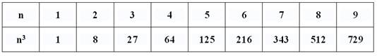Nếu biết lập phương của một số nhỏ hơn 100, bạn có thể biết được số đó ngay mà không cần tính toán gì, mà chỉ dựa vào bảng lập phương của các chữ số từ 1 đến 9, như dưới đây:
