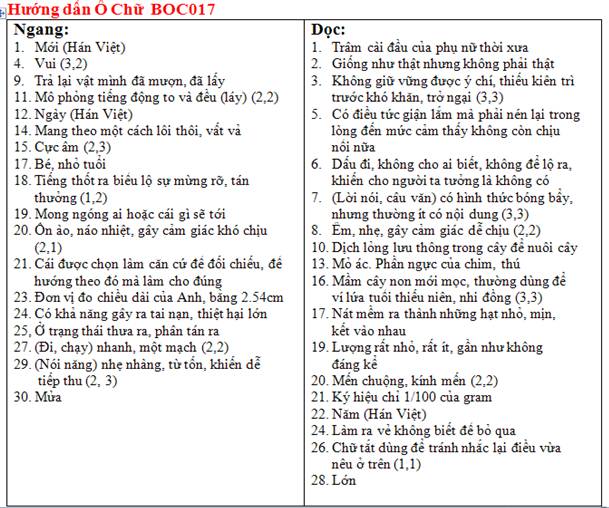 Thí dụ: ôn tập => ONTAP; đặc điểm => DACDIEM; Can-xi => CANXI