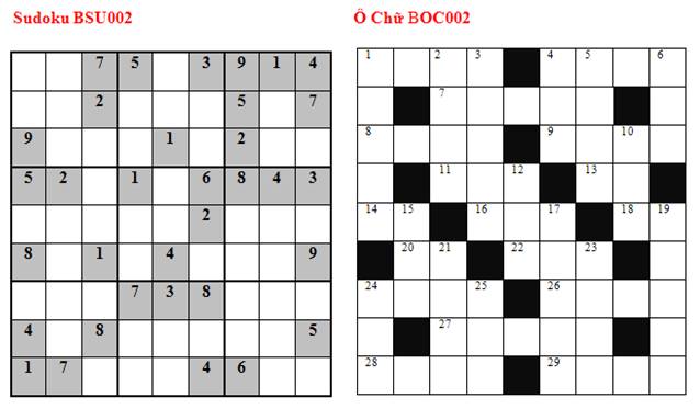 SUDOKU: Điền số (1..9) vào các ô trống sao cho các hàng, các cột và các khối 3×3 đều chứa tất cả các số từ 1 đến 9 (không trùng nhau).