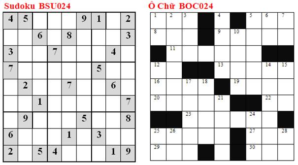 SUDOKU: Điền số (1..9) vào các ô trống sao cho các hàng, các cột và các khối 3×3 đều chứa tất cả các số từ 1 đến 9 (không trùng nhau).