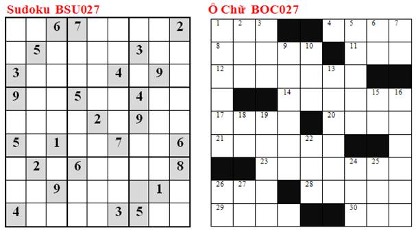 SUDOKU: Điền số (1..9) vào các ô trống sao cho các hàng, các cột và các khối 3×3 đều chứa tất cả các số từ 1 đến 9 (không trùng nhau).