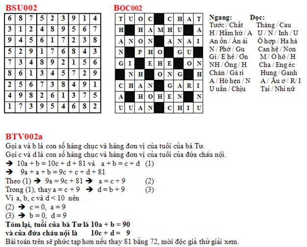 SUDOKU: Điền số (1..9) vào các ô trống sao cho các hàng, các cột và các khối 3×3 đều chứa tất cả các số từ 1 đến 9 (không trùng nhau).