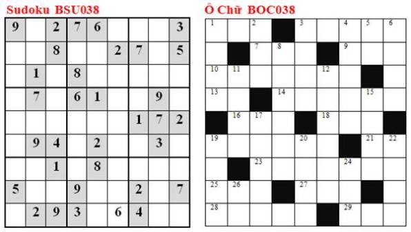 SUDOKU: Điền số (1..9) vào các ô trống sao cho các hàng, các cột và các khối 3×3 đều chứa tất cả các số từ 1 đến 9 (không trùng nhau).