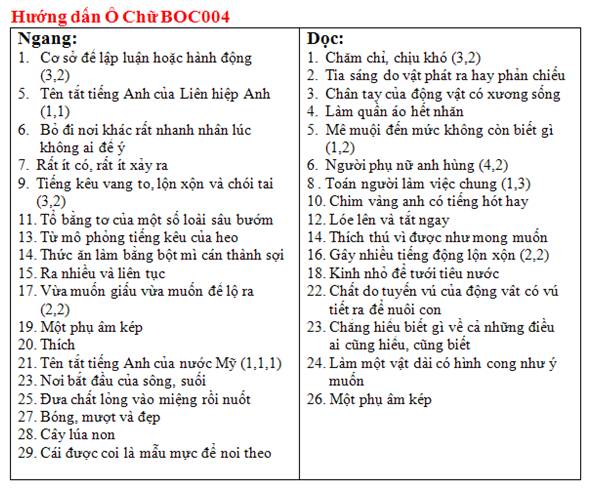 Ô CHỮ : Quy ước