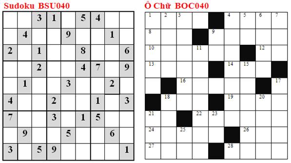 SUDOKU: Điền số (1..9) vào các ô trống sao cho các hàng, các cột và các khối 3×3 đều chứa tất cả các số từ 1 đến 9 (không trùng nhau).