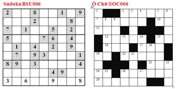 SUDOKU: Điền số (1..9) vào các ô trống sao cho các hàng, các cột và các khối 3×3 đều chứa tất cả các số từ 1 đến 9 (không trùng nhau).