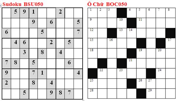 SUDOKU: Điền số (1..9) vào các ô trống sao cho các hàng, các cột và các khối 3×3 đều chứa tất cả các số từ 1 đến 9 (không trùng nhau).