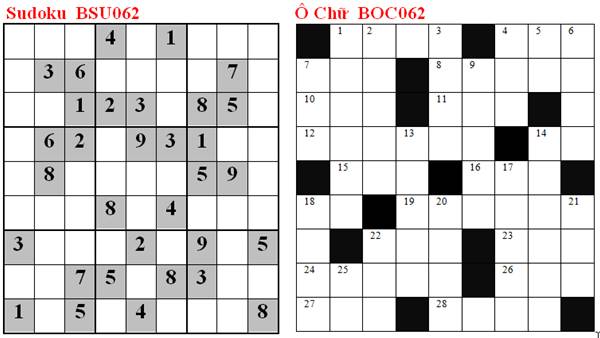 SUDOKU: Điền số (1..9) vào các ô trống sao cho các hàng, các cột và các khối 3×3 đều chứa tất cả các số từ 1 đến 9 (không trùng nhau).