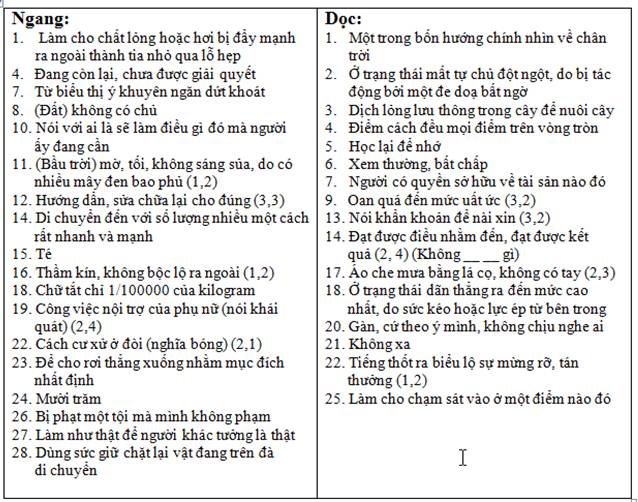 Thí dụ: ôn tập => ONTAP; đặc điểm => DACDIEM; Can-xi => CANXI