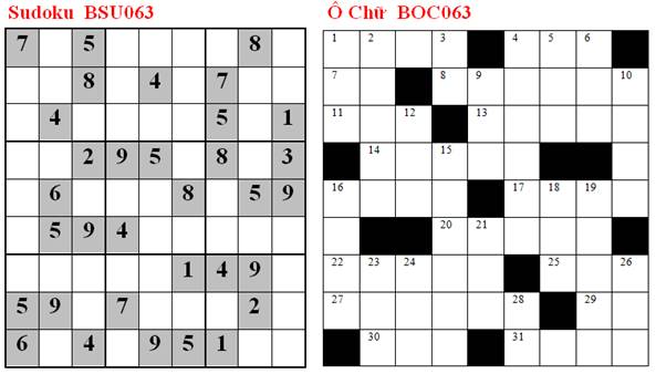 SUDOKU: Điền số (1..9) vào các ô trống sao cho các hàng, các cột và các khối 3×3 đều chứa tất cả các số từ 1 đến 9 (không trùng nhau).