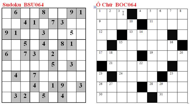 SUDOKU: Điền số (1..9) vào các ô trống sao cho các hàng, các cột và các khối 3×3 đều chứa tất cả các số từ 1 đến 9 (không trùng nhau).