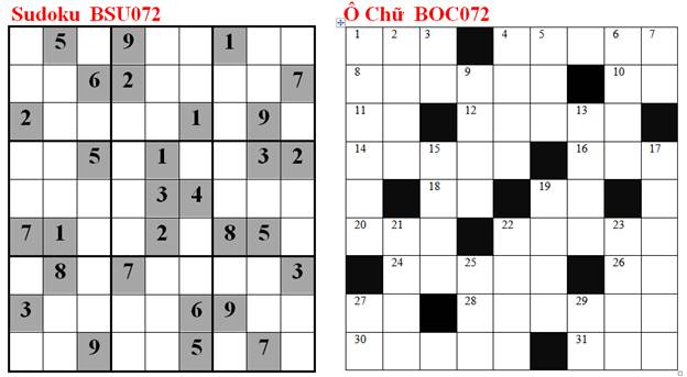 SUDOKU: Điền số (1..9) vào các ô trống sao cho các hàng, các cột và các khối 3×3 đều chứa tất cả các số từ 1 đến 9 (không trùng nhau).