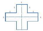 BTV074b – Bạn có một hình chữ thập với kích thước như trong hình vẽ. Bạn cắt hìmh theo 2 trục đối xứng ngang và dọc. Có cách nào ráp 2 mảnh cắt lại để có 2 hình vuông không? Tính diện tích của 2 hình vuông đó.