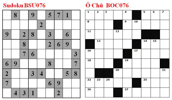 SUDOKU: Điền số (1..9) vào các ô trống sao cho các hàng, các cột và các khối 3×3 đều chứa tất cả các số từ 1 đến 9 (không trùng nhau).