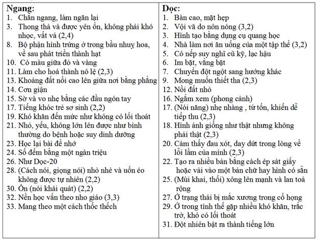 Ô CHỮ KHÔNG DẤU : Quy ước