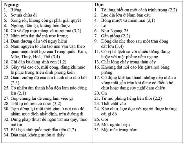 Ô CHỮ KHÔNG DẤU : Quy ước