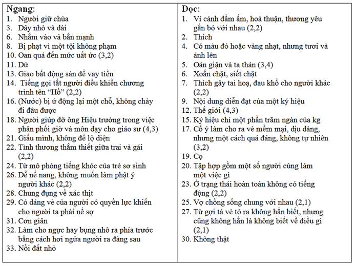 Ô CHỮ KHÔNG DẤU : Quy ước